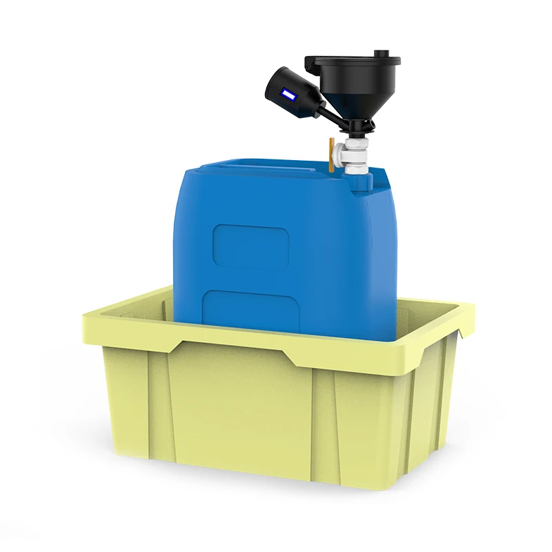 Jäätmevedelike kogumissüsteem on varustatud standardse ujuktaseme indikaatori ja antistaatilise maandusklambriga.